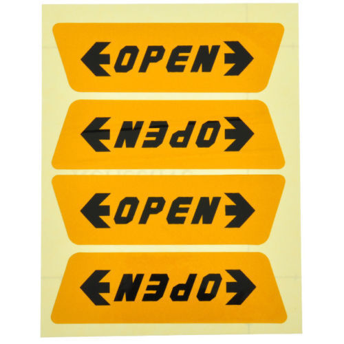 Set 4 Adesivo OPEN per portiera AUTO Sticker Sicurezza Riflettente 10x3cm Giallo