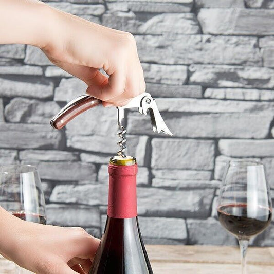 Set 3in1 Vino Sommelier Coltello con Cavatappi Apribottiglie manico legno