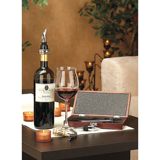 Set da Sommelier in Cofanetto di legno per Vino con 5 accessori Termometro Bar