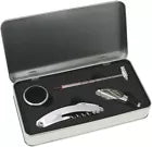 Set 4 Sommelier in Cofanetto latta per Vino Termometro Bar Anello Apribottiglie
