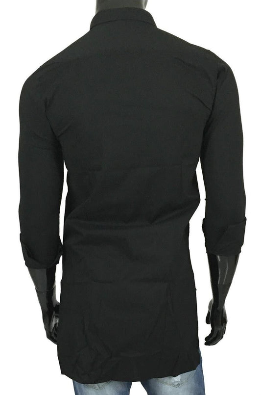 Camicia UOMO Disomogenea collo Classico Color NERO Manica lunga Slim FIT