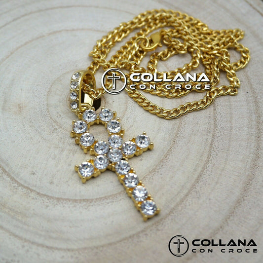 Collana con croce della vita Egiziana di ANKH Egizia Vintage con pietre bianche