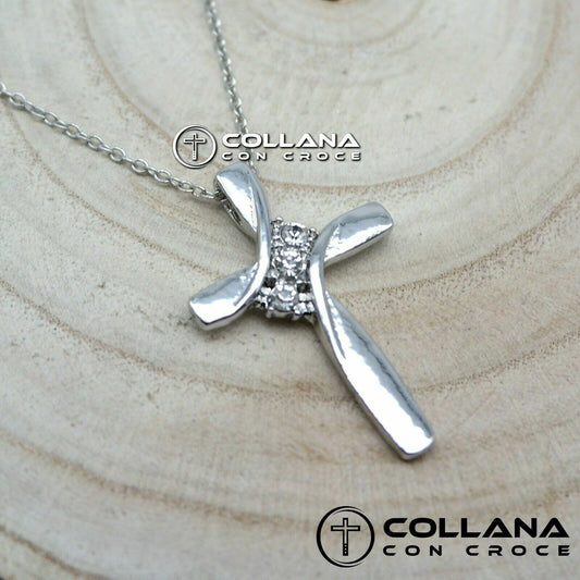 Collana con croce per Donna pietre Strass Catena pendente Ciondolo Crocifisso