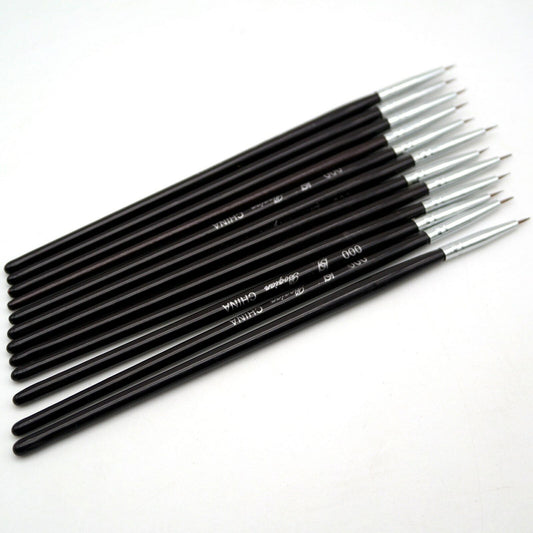 KIT 12 Pennelli per nail art misure 000 costruzione unghie professionale nero