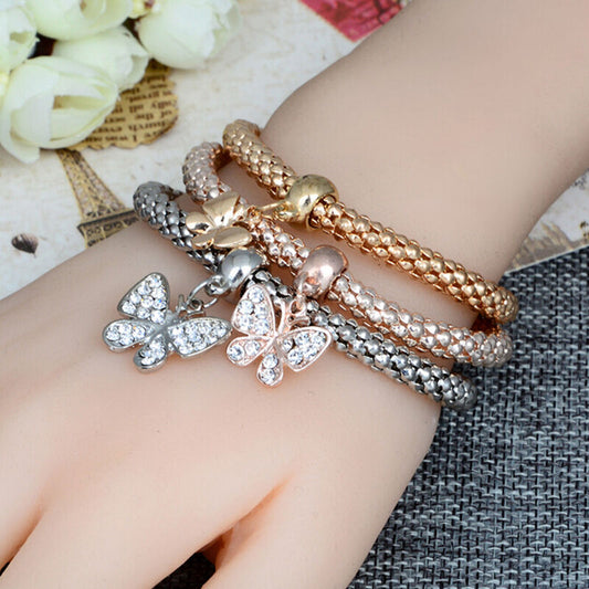 3x Bracciale Donna Charms Farfalla con strass Braccialetto moda elasticizzato