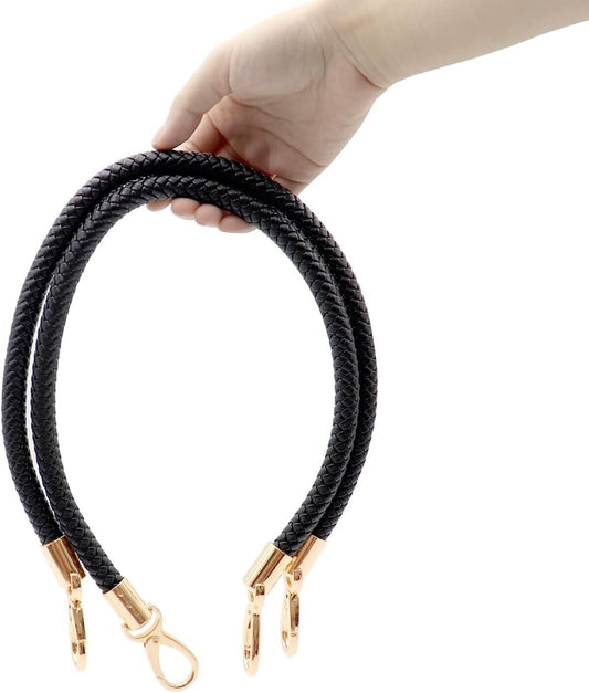 2x Maniglia manico intrecciato nero per borse con gancio fibbia