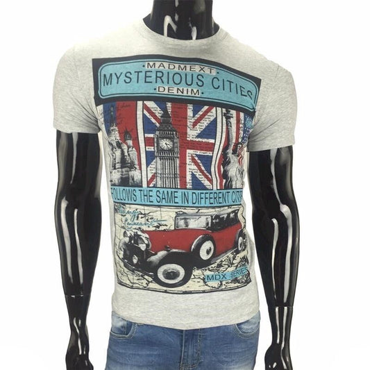 T-shirt UOMO Manica Corta Cotone Fantasia maglietta bianco grigio estiva