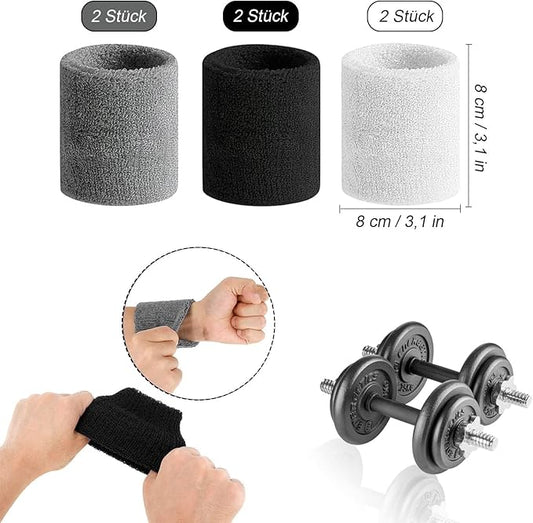 6 Fascia polsini Corsa Sport Tennis Basket Fitness Palestra Unisex allenamento