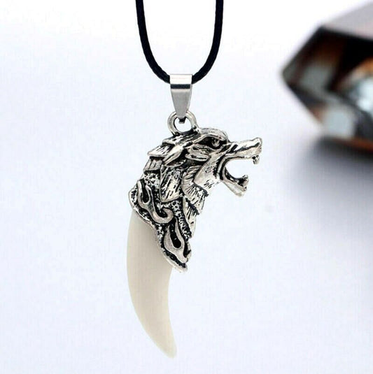 Collana pendente DENTE di LUPO WOLF Metallo Elegante UOMO Coraggio