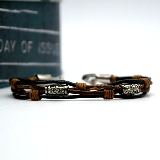 Bracciale da uomo Similpelle con CHARMS corde intrecciate color Nero e Marrone
