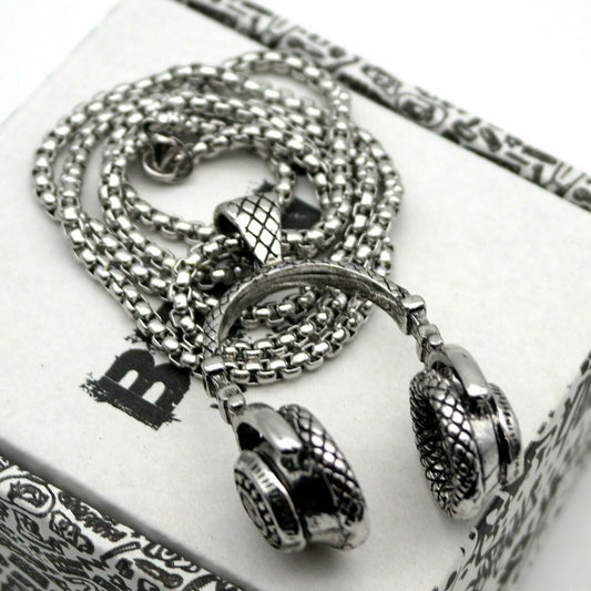 Collana Hip Hop da Uomo catena lunga con Pendente CUFFIE Grande Rapper 3d