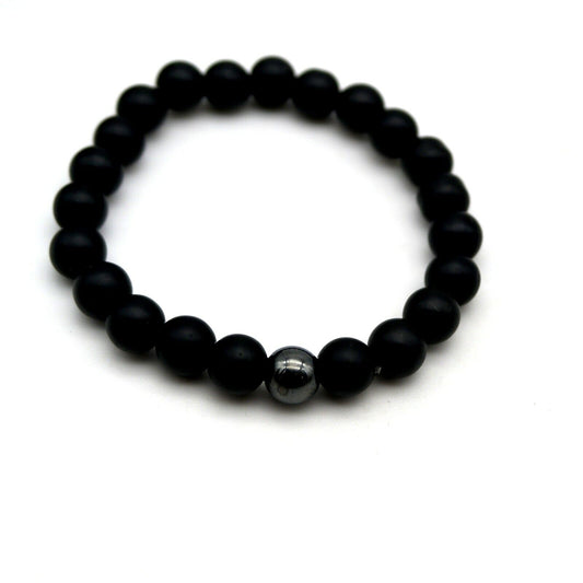 Bracciale da Uomo sfera nero palline regolabile elasticizzato braccialetto
