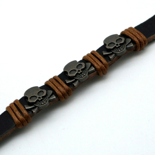 Bracciale Braccialetto UOMO Ecopelle con TESCHIO SKULL in METALLO