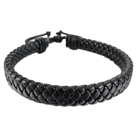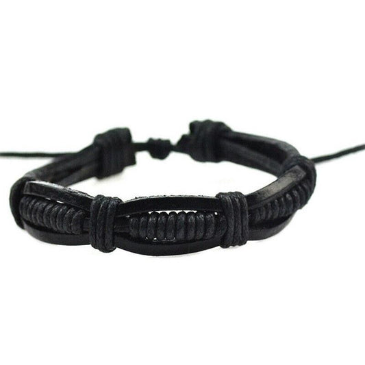 Bracciale Braccialetto da UOMO Ecopelle Nero Regolabile intrecciato
