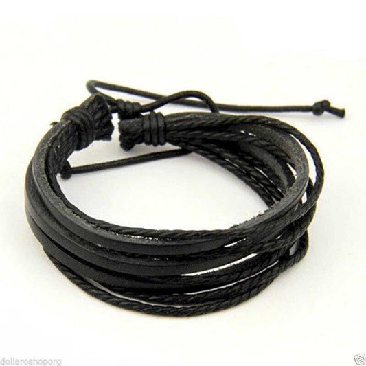 Bracciale Braccialetto UOMO Ecopelle Nero Regolabile Corda WRAP intrecciato