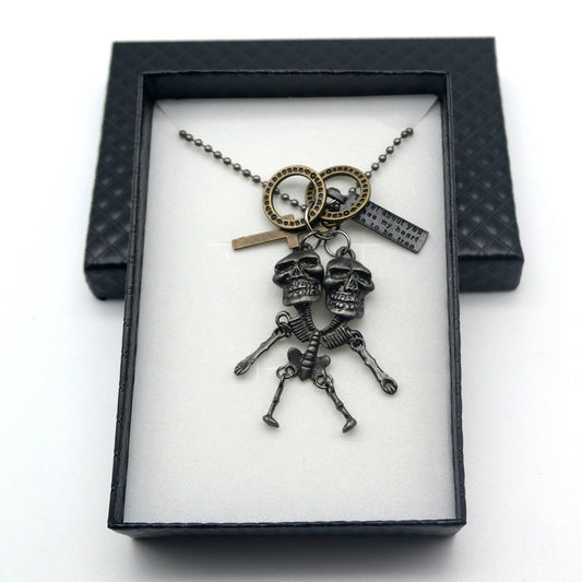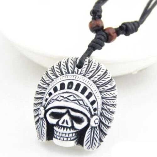 Collana Uomo con pendente Ciondolo Tribale skull cranio indiano