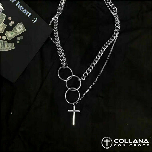 Collana con Croce Collanina Gotica Hip Hop catena in acciaio per Uomo Punk