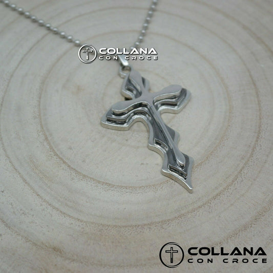 Collana con catena ciondolo Croce Collanina da Uomo Crocifisso Silver pendente