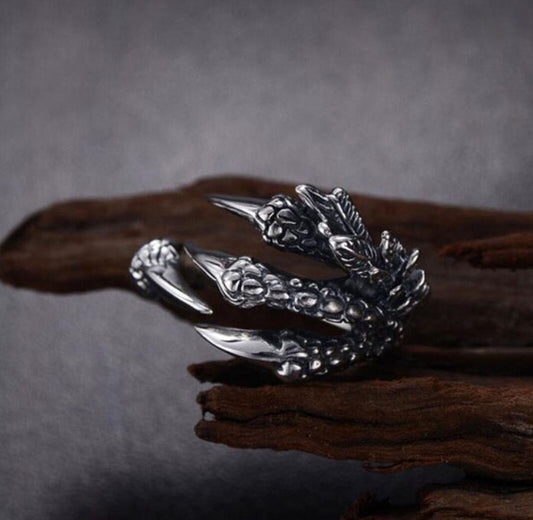 Anello da Uomo Regolabile Fashion UNGHIE DEL DRAGO Artigli Dragone Silver punk