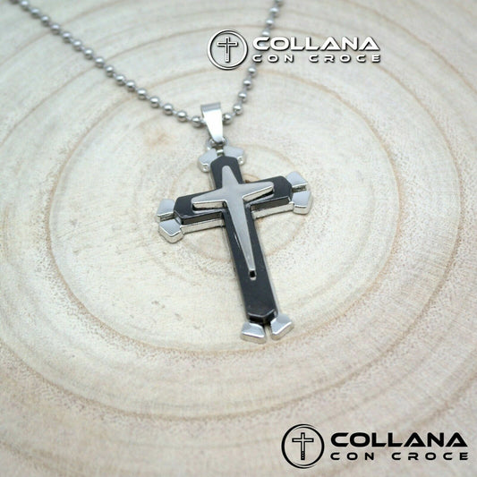 Collana con pendente Ciondolo a Croce Antracite e Silver da Uomo Catena