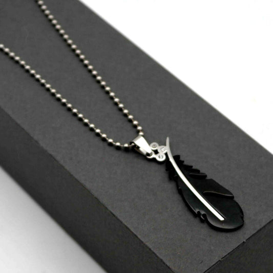 Collana pendente PENNA PIUMA NERA INDIANO Elegante UOMO Coraggio