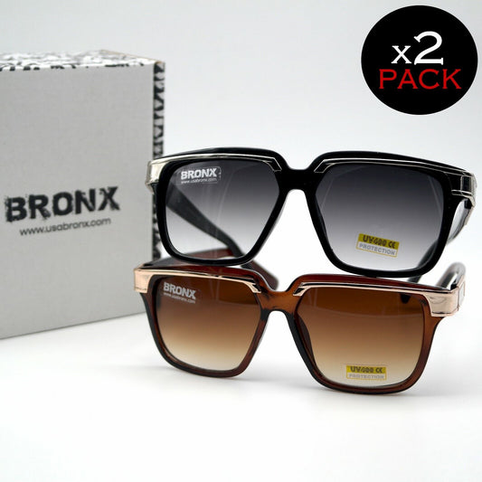 Set 2x Occhiali da Sole Montatura Nero Marrone Occhiale Uomo Rettangolare