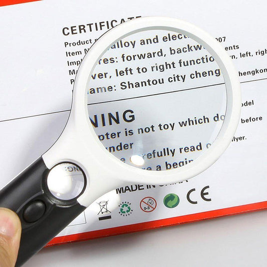 Lente di Ingrandimento con Luce 3 LED 3x 45x 75mm pulsante per leggere libri