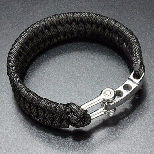 Bracciale Paracord Corda Nera Militare chiusura Acciaio Sopravvivenza da Uomo