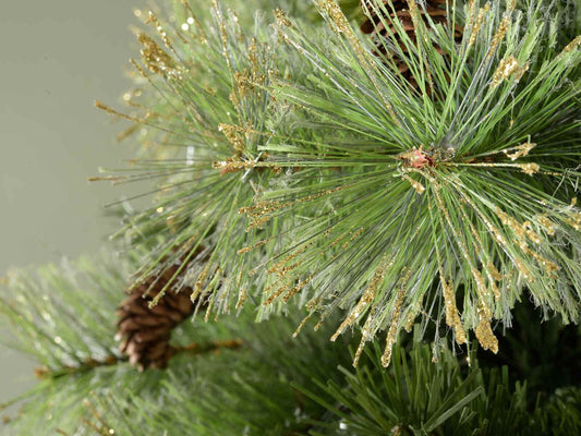 Pino Artificiale H 180 cm con 665 Rami Glitter e Pigne Albero di Natale vintage