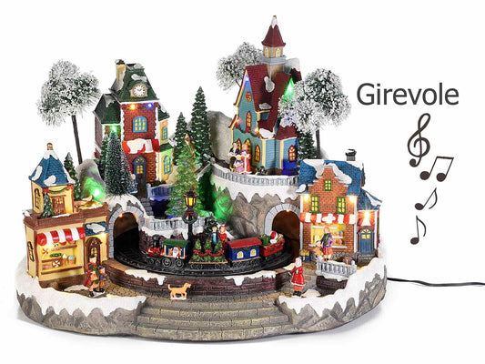 Villaggio natalizio in movimento con luci e musica Natale Decorazioni Natalizie