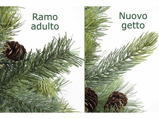 Pino Artificiale H 210 cm 1017 Rami con Glitter e Pigne Albero di Natale vintage