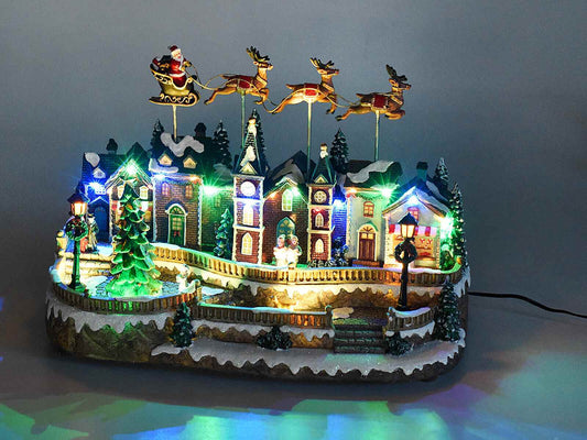 Villaggio natalizio in resina con luci 8 canzoni e movimento Natale Decorazioni