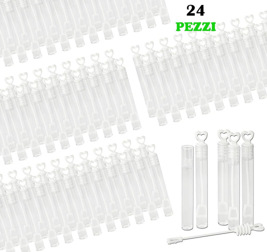 24 boccettini di bolle sapone per matrimonio con tappo a cuore trasparente flaconi
